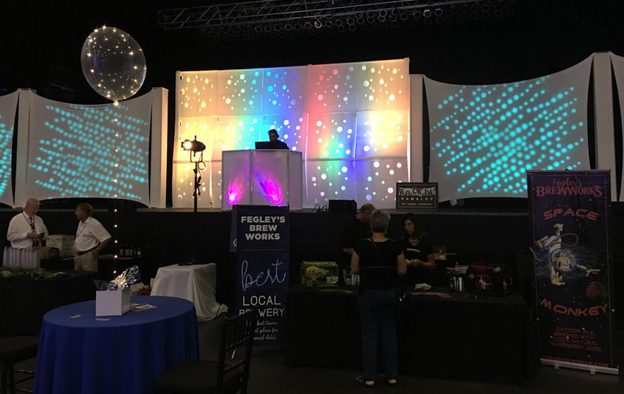 We are large enough to supply a full tradeshow with 100+ booths of pipe, drape, tables, chairs, and power. We can safely hang thousands of pounds of lighting and audio and scenery above stages. We can even provide the stages, from 6 inches to 6 feet tall. We have weather proof lighting and electrical systems for your outdoor events. We have dedicated technicians that handle all of your extensive audio and video presentation needs. We can also provide all the table and large scale decor for your gala, whether its 100 guests or 1000.